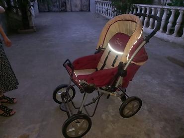 Uşaq arabası – qırmızı-bej rəng kombinasiya, iri təkərli model. Xüsusiyyətlər: - Tənzimlənən arxa dayaq – tam və yarı uzanmış mövqelər - Böyük, qatı günlüyə sahib başlıq (kapot) – əlavə külək qoru...