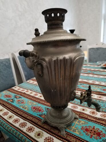 Ənənəvi çay mərasimlərinin ruhunu əks etdirən ağır, bədii işləməli samovar. Dekorativ və funksional məqsədlər üçün yararlıdır.
