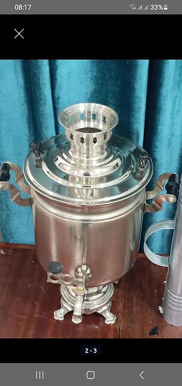 7 lt od samavar cox az işlenib rus istehsal hec bır problemi yoxdur.1980 illerin. Klassik metal samovar – kömür/odunla işləyən model Xüsusiyyətlər: - Material: cilalanmış metal gövdə və qapaq, dek...