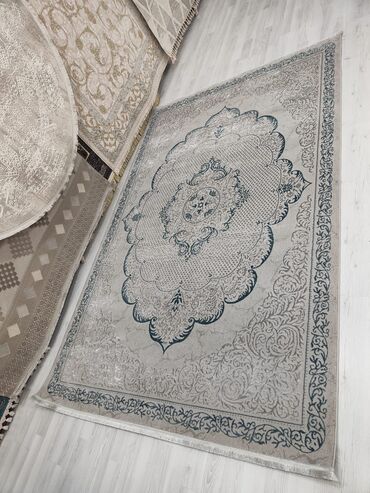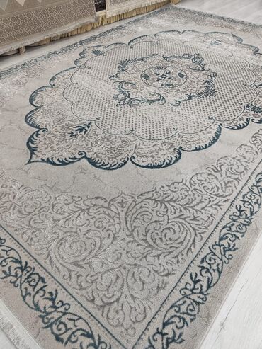 Qalin teze Xalça – klassik naxışlı, açıq bej/boz tonlarda ÖLÇULERİ :2,5x 4 metre - Dizayn: Ortada dairəvi medalyon, ətrafında zərif barokko üslublu ornamentlər; kənarlarda güllü bordür və naxışlı h...