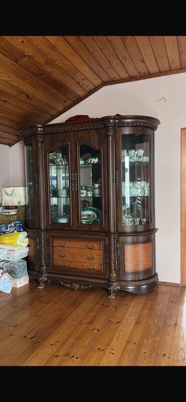 Klassik üslubda otaq mebeli dəsti 120 manat mebleğ ! digər işlər alıcıya məxsusdur! Tərkibi: - Geniş üçkapılı vitrinq – şüşə fasad, içəridə şüşə rəflər, yuxarı hissədə dekorativ oyma elementlər, a...