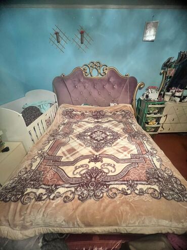 Yataq otağı dəsti matras yoxdur təcili satilir endirimmm - Üslub: klassik-royal dizayn, krem rəngində korpus, qızılı relyef detalları və bənövşəyi/çəhrayı süni dəri dekoru - Komplekt: • Yataq çə...