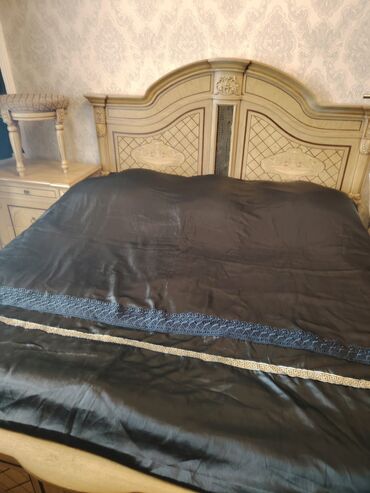 - Üslub: klassik/rokoko detallar, qızılı və tünd konturlu oyma dekor, mərkəzdə ornamentli panellər