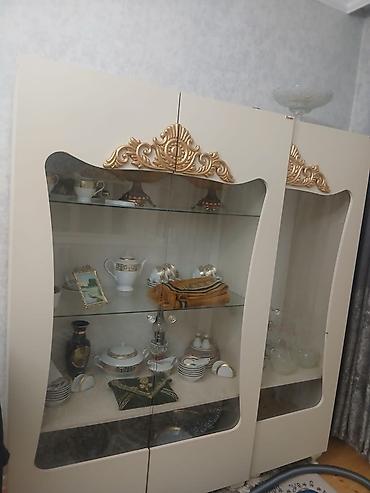 - Material: MDF/LDSP əsaslı korpus, şüşə vitrin qapıları, güzgü panelləri