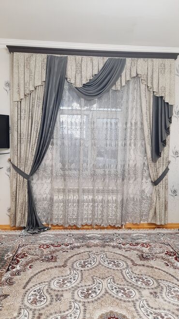 - Komplekt: ikiqat qalın pərdə, tül, dekorativ lambreken və iki ədəd bağlama kəməri