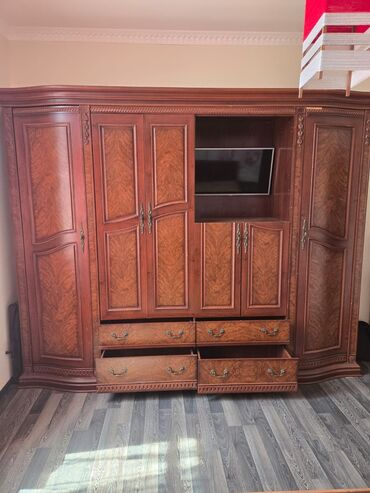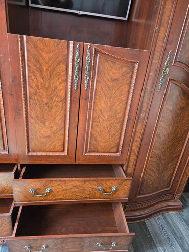 Стенка в хорошем состоянии,вместительная,локация говсаны,самовывоз,9 этаж Mebel dəsti - Klassik üslubda iri divar mebel sistemi: çoxseksiyalı konstruksiya, yuxarıda qapalı dolablar, ortada açıq ...