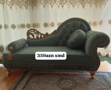 Klassik üslubda şezlonq/divan - Rənglər: zeytun-yaşıl və açıq qəhvəyi variantları - Material: məxməri toxumalı parça, kənarlarda zərif qızılı bəzək xətti - Dizayn: dərin kapitone arxa hissə, spiral...