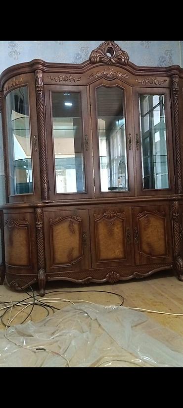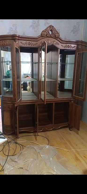Klassik üslubda, oyma naxışlı vitrin-komod mebeli. - Rəng: açıq