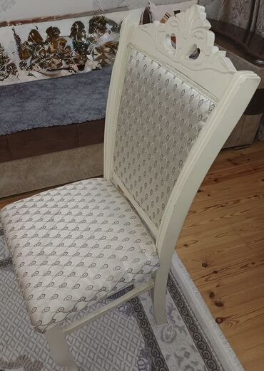 Zərif oyma detalları və parlaq naxışlı üzlüyü ilə məkanınıza klassik eleqantlıq qatır.Çox bərk və səliqəli stullardı 6 ədəddir. Heç bir problemi yoxdur.