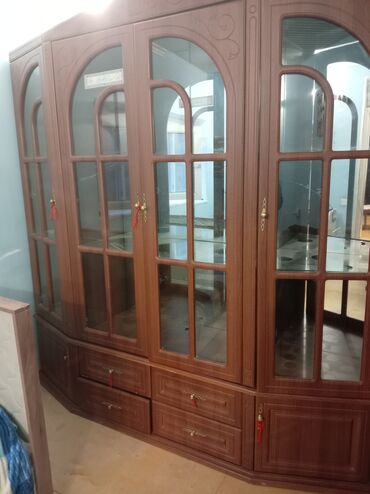 Satılır ucuz qiymətə Klassik üslubda böyük vitrin-bufet - Material: massiv ağac görünüşlü, bəzəkli oyma detallar - Rəng: tünd qəhvəyi - Konstruksiya: yuxarı hissə şüşəli vitrin, aşağı hissə qapalı...