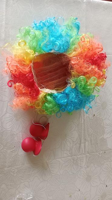 - Aksesuarlar: çoxrəngli qıvrım parik; elastik lentli qırmızı klovn burunları (2 ədəd)