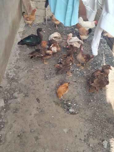 - Toyuqlar: müxtəlif rənglərdə yerli yumurtacı cinslər (ağ xoruz, sarı-qırmızı və krem rəngli toyuqlar), həmçinin cücələr.