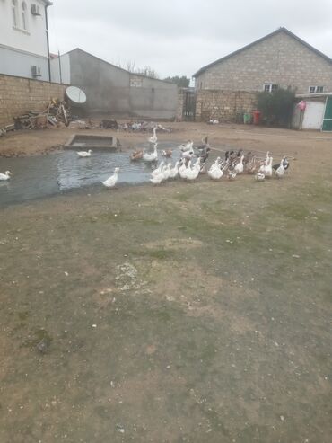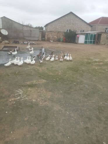 Qarışıq təsərrüfat quşları satılır - Qaz sürüsü: ağ və boz-qara zolaqlı (Seben/Boz tipinə bənzər) iri bədənli quşlar. Sürüdə dişi və erkək fərdlər var. - Ördəklər: ağ rəngdə, açıq sahədə sərbəst g...