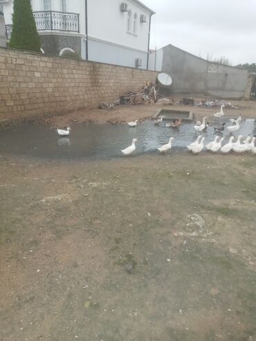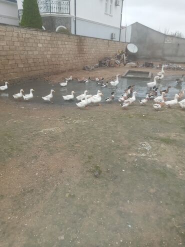 Ağ qazlar satılır. disidiler 40 azn. erkey isdiyen olsa 60 azn 1i. linda qazi. - Növ: Ağ ev qəzləri - Say: Şəkillərdə 4 baş görünür (yanında boz rəngli qaz da var) - Xüsusiyyətlər: Uzun boyunlu, ...