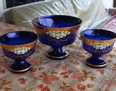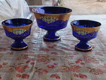 Şüşə meyvəqabı – ayaqlı, dekorativ qızılı detallar ilə - Material