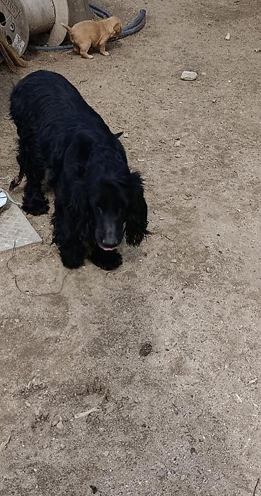 - Ana: şəkillərdə gördüyünüz saf qara uzunqulaq Cocker Spaniel (ana balalarla birlikdədir).