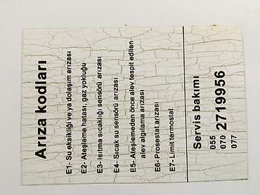 - Korpus üzərində “Arıza kodları” etiketi (E1–E7): su çatışmazlığı/dolaşım, alışma və alovun aşkarlanması, isitmə və isti su sensorları, prosestat və limit termostat barədə məlumatlar
