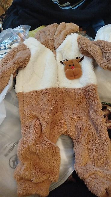 4) Ağ-qəhvəyi kombinezon – maral temalı aplikasiya/oyuncaq detallı sinə hissəsi, ön fermuar.