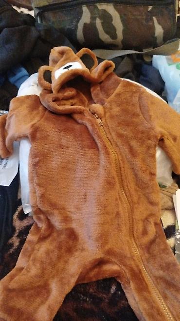 3) Karamel rəngli kombinezon – başlıqda ayı qulaqları və üz detalı, ön tərəfdə tam uzunluqlu fermuar.