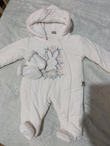 Uşaq üçün qış kombinezonu - Marka: Obaibi (etiket üzərində) - Naxış: krem əsaslı, kiçik çiçəkli print - Quruluş: tam bədən kombinezon, kapüşonlu - İçlik: yumşaq, isti, tüklü/fleece astar kapüşonda...