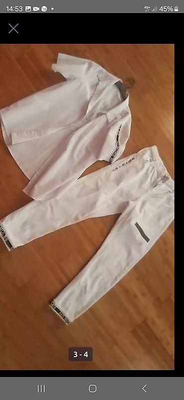 - 1 ədəd ağ dəst (3-4 ölçü kimi qeyd var şəkildə): qısaqol köynək və uyğun şalvar, üzərində qara yazı/naqış detalları.
