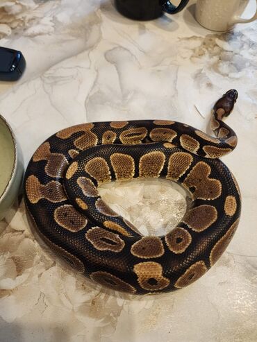 Ball Python (Python regius), klassik “normal” rəng forması. Yetiskin erkek .