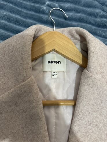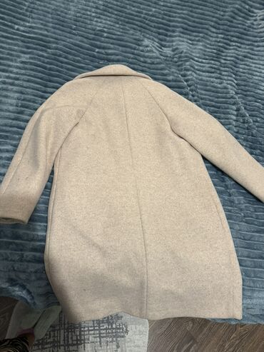 CREP qadın palto – Ölçü S - Rəng: klassik açıq bej/kamel - Üslub: ikicərgəli düymələmə, geniş haşiyəli yaxa (lapel) - Material hissiyyatı: sıx, isti və hamar toxuma (payız-qış üçün uyğundur) - Cib...