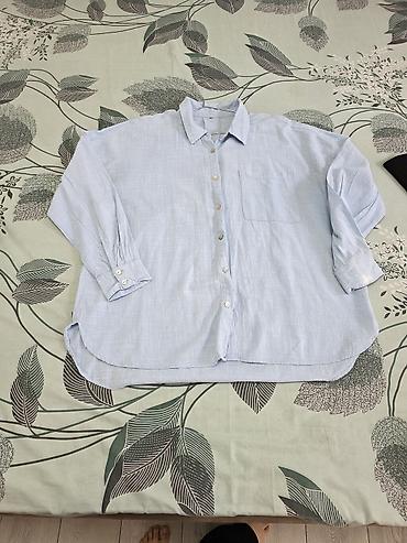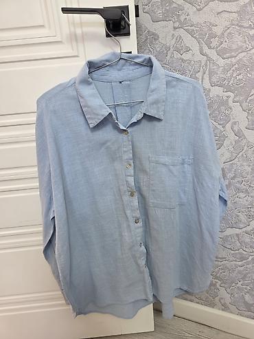TRENDYOLDAN ALINIB .Mavi rəngdə uzunqollu köynək - Stil: Klassik düyməli, yarım stend yaxalı - Rəng: Tünd bənövşəyi-mavi - Kəsim: Rahat, bir qədər oversize siluet; aşağı hissəsi yüngül yuvarlaq -...