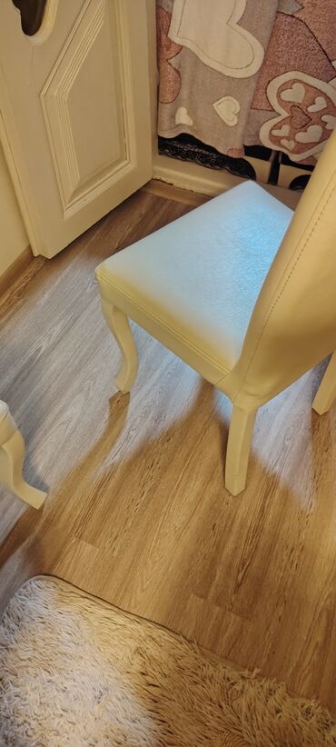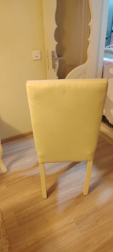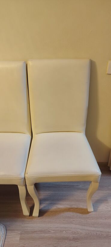 Açıq krem rəngində klassik üslubda yumşaq oturacaqlı stullar dəsti.