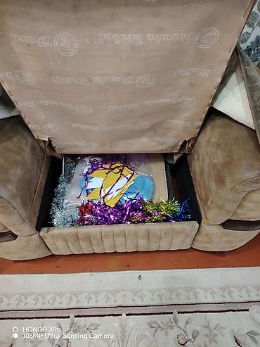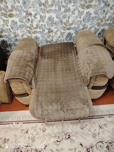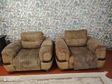 Mebel: Yumşaq kreslo dəsti (2 ədəd) Təsvir: - Klassik dizaynlı, iri ölçülü yumşaq kreslolar - Qəhvəyi rəngli toxumalı parça üzlük, dekorativ naxışlar - Geniş oturacaq və qalın bel-dirsək dayaqları...