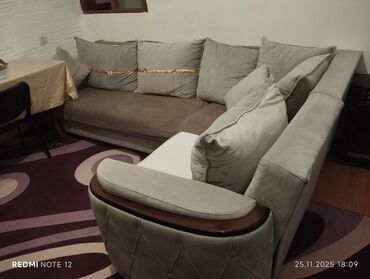 Künc divanı – yumşaq toxumalı, açıq boz rəng palitrası
