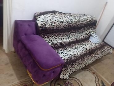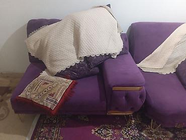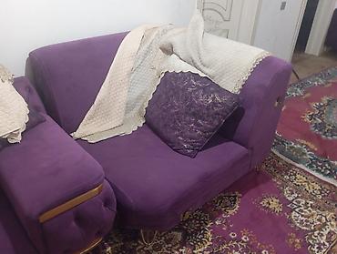 Bənövşəyi rəngli yumşaq parça ilə üzlənmiş künc divan dəsti.