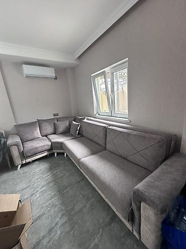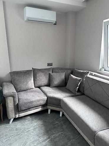 - Komplekt: Böyük əsas divan hissəsi + künc/şezlon hissə + bir neçə yastıq (iki üzlü bej/boz)