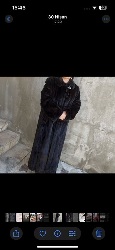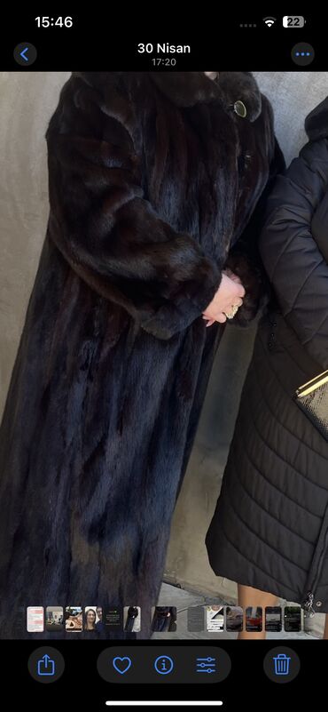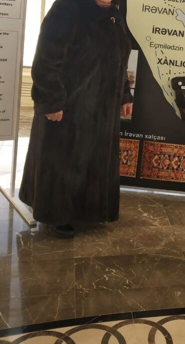 Qadın üçün uzun tünd rəngli xəz palto - Klassik, dizdən aşağı uzunluq - Yumşaq və sıx tük quruluşu, vahid tünd qəhvəyi/qaraya çalan ton - Geniş, yumuşaq yaxa - Ön hissədə gizli düymə bağlanma - Ra...
