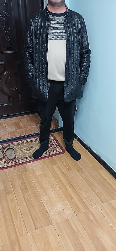 Qara dəri kişi kurtkasi 4xl dir. 2 dəfə geyinilib. Bunun eynisi var xl dir.