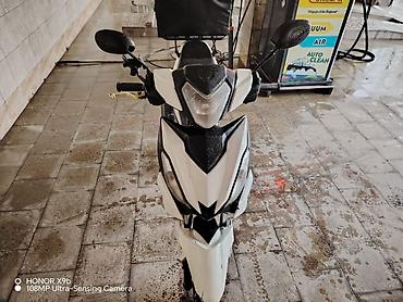 Şəhər içi sürüş üçün praktik skuter - Rəng: qara, idman tipli gövdə dizaynı - Ön fara və əlavə sarı duman lampaları - Mexaniki sürətölçən paneli: 20 915 km göstərici (km/h şkalası 0–80) - Yanacaq ...