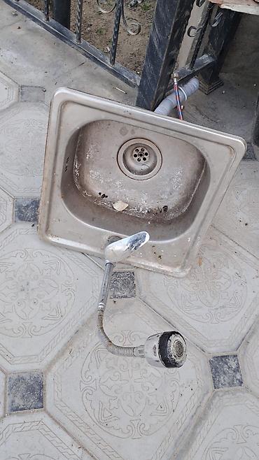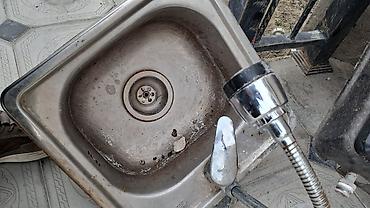 Mətbəx üçün paslanmayan polad lavabo və çevik hortumlu kran dəsti.
