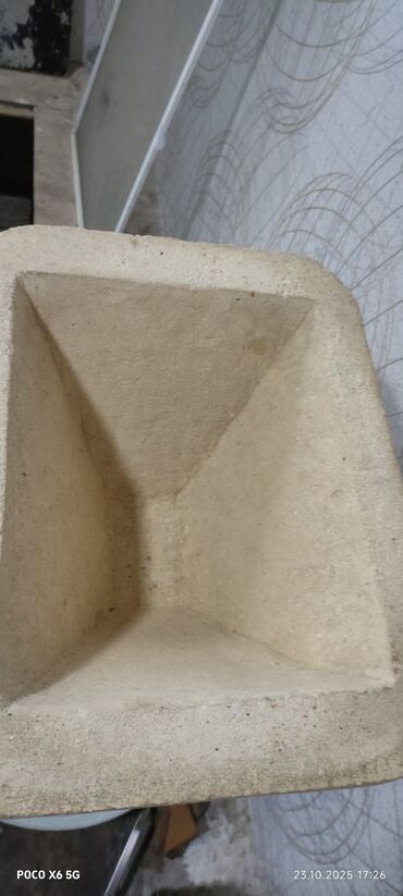 Təbii daşdan hazırlanmış kvadrat formalı huni/blok - Material: sıx təbii daş (daş tozu-beton tipli), birparça tökmə - Forma: kvadrat ağızlı, içi piramidaşəkilli enişli huni; alt hissə daralır - Rə...