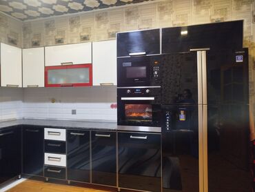 - Daxili texnika üçün yerlər: soba, mikrodalğalı, qaz plitəsi, paltaryuyan, qabyuyan və iri ikikameralı soyuducu üçün inteqrasiya olunmuş nişlər