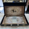 Taxta nərd–şahmat dəsti - Material: ağacdan hazırlanmış, laklı səth - 2-in-1 dizayn: qapalı halda üst tərəfdə şahmat/şah-dama taxtası; iç tərəfdə nərd oyun sahəsi - Bədii işləmə: üzərində “Baku” y...