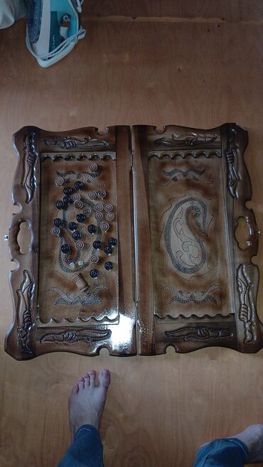 Əl işı taxta nərdə (backgammon) dəsti - Material: bərk ağac