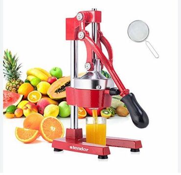 - Güclü qol mexanizmi ilə əl ilə işləyən şirəçəkən: qolu aşağı salmaqla maksimum sıxma gücü yaradır, meyvənin suyunu tam çıxarır.