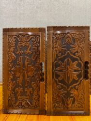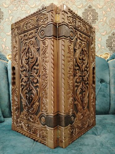 Əl işı ilə hazırlanmış taxta nərd/domnino lövhələri və dekorativ taxta panel. Xüsusiyyətlər: - Material: təbii ağac (zəngin teksturalı, laklı səth). - Dizayn: əl oyma naxışlar, barokko və şərq üsl...
