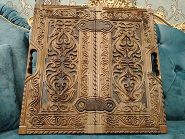 Əl işı ilə yonulmuş taxta nərd/şaxmat taxtaları - Material: təbii ağac, cilalanmış səth, kənarlarda oyma naxışlar - Dizaynlar: - Qurd, şam, ulduz motivləri ilə klassik qəhvəyi variant - Kompa...