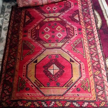Məhsul: Əl toxuması xalça və kiçik xalça parçaları dəsti 70 ilə yaxindi Təsvir: - Şərq naxışları ilə klassik üslubda toxunmuş, qırmızı-bordo tonlarının üstünlük təşkil etdiyi orta ölçülü xalça. Mə...