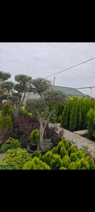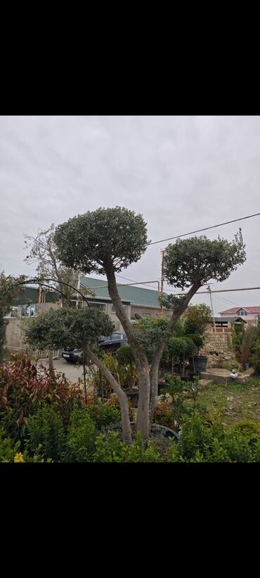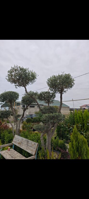 - Formaya salınmış zeytun ağacları (topiar), çoxgövdəli və şar formalı başlıqlar