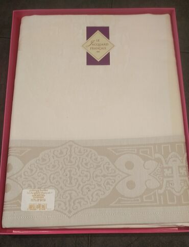 - Rəng və dizayn: açıq krem/şampan tonlarında jacquard naxışlı, klassik ornamental haşiyə