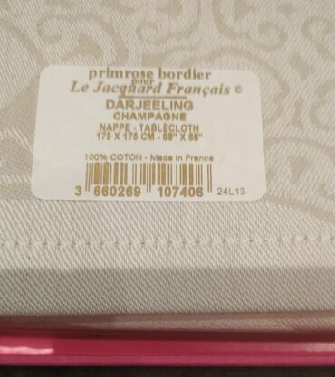 Zərif şam yeməkləri və xüsusi günlər üçün ideal, qalın toxunuşlu jacquard pambıq masa örtüsü. Kvadrat masalar üçün uyğun ölçü. Fransız istehsalı keyfiyyət və incə naxış işləməsi ilə seçilir.