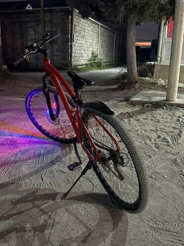 Dağ/şosse tipli velosiped - Rəng: qırmızı, qara detallarla - Çərçivə