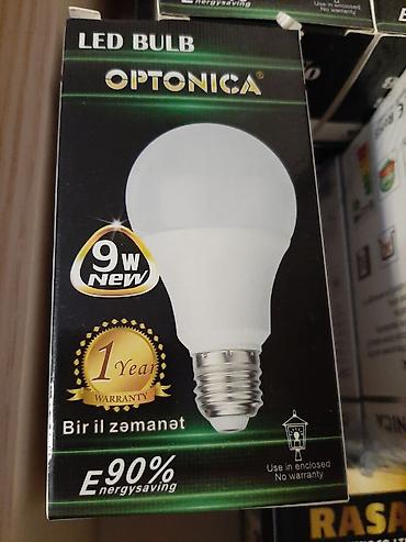 - OPTONICA LED Bulb – 9W NEW. Qutuda: “Bir il zəmanət”, “E90% energy saving”. Qapalı armaturlarda istifadə zamanı zəmanət yoxdur qeyd edilib.